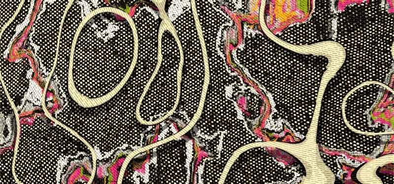 populated by particles that assemble, warp, and drift,